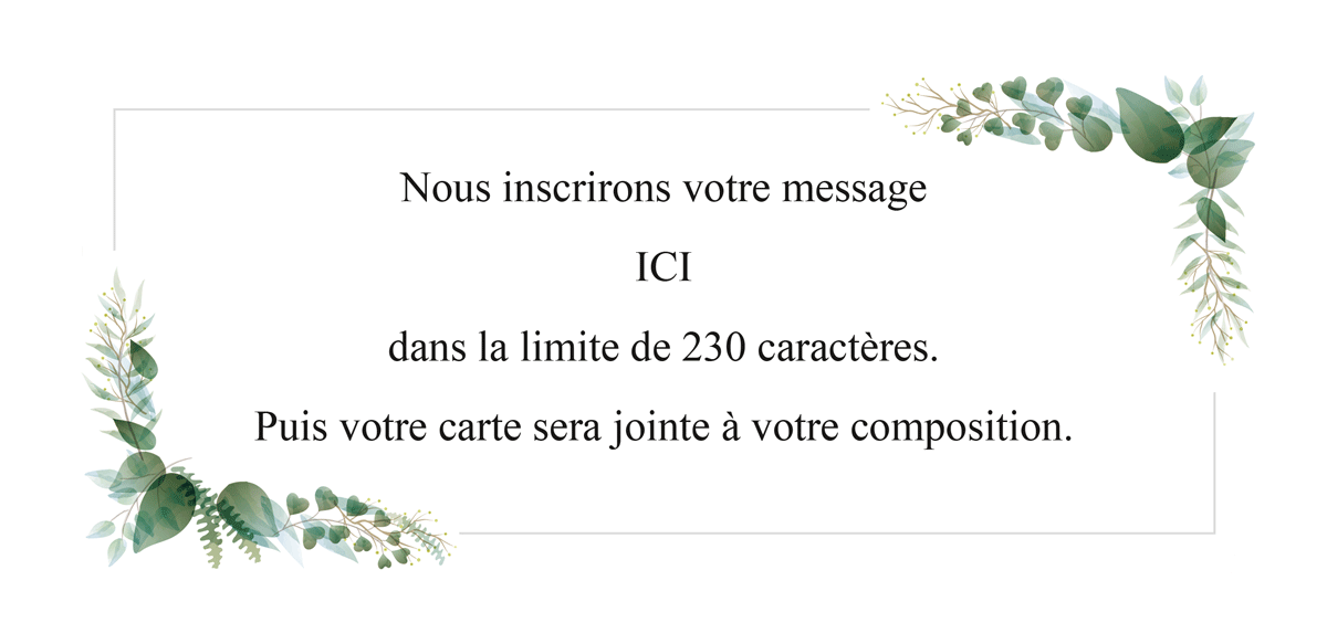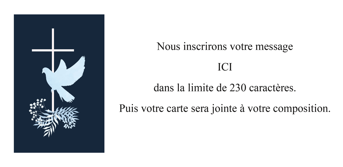 Carte de condoléances, motif au choix, texte personnalisé. Papier 340gr, enveloppe 120gr Blanche fournie. Livré avec la composition florale.