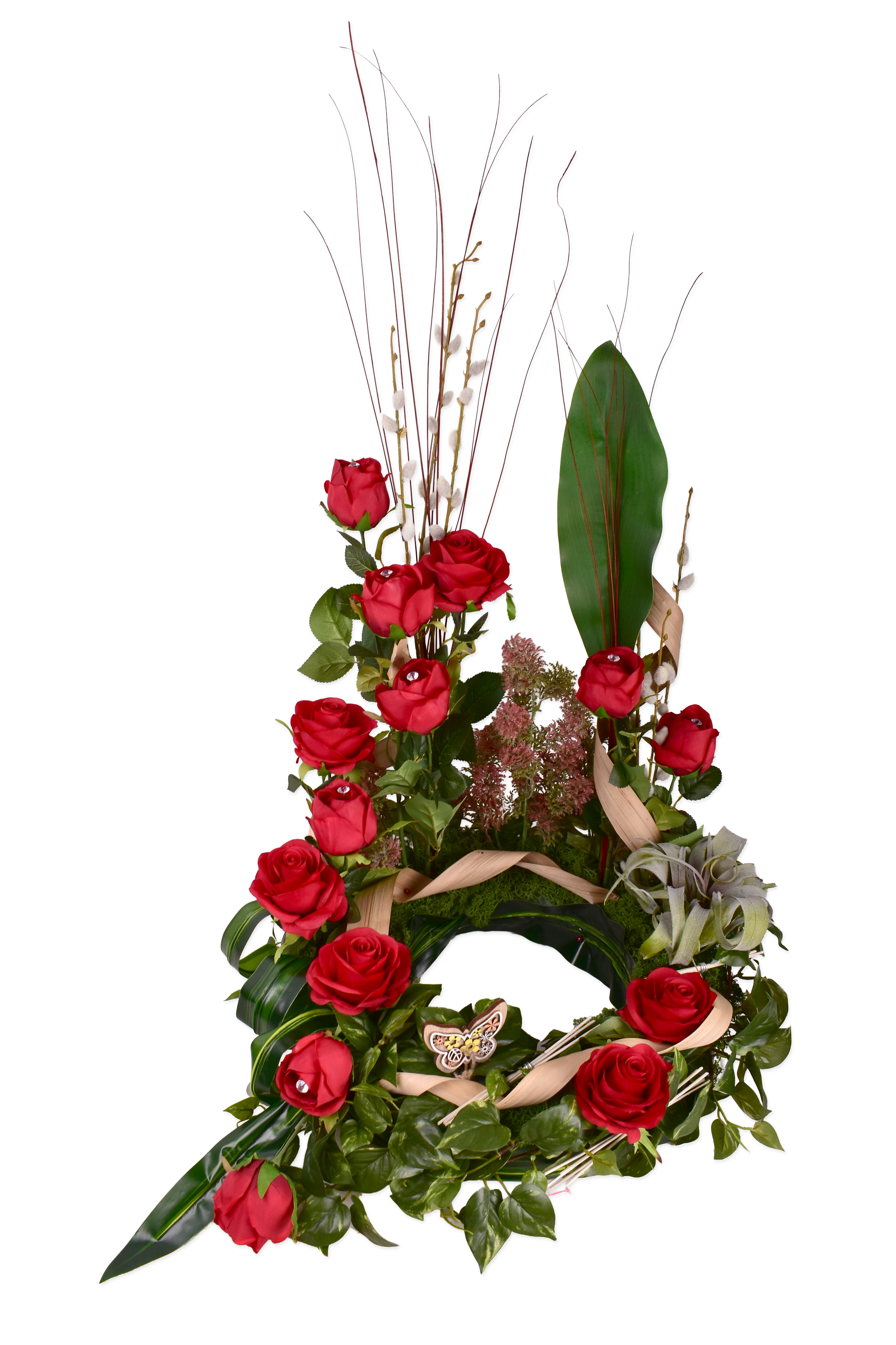 Décor d'urne, rose, bouton, echéveria SDU40501-1