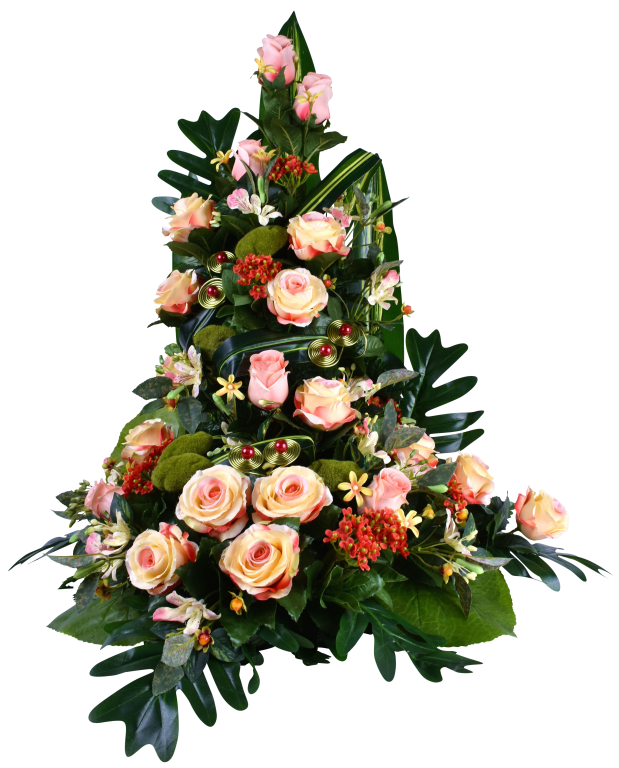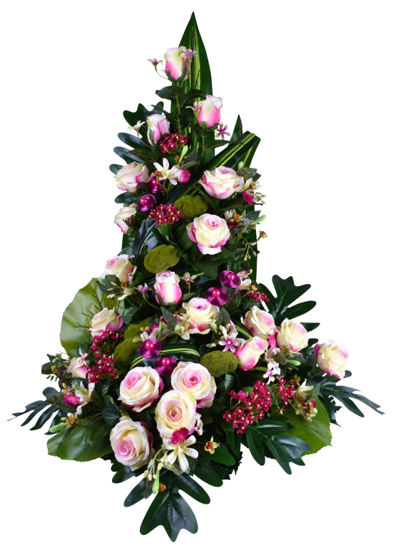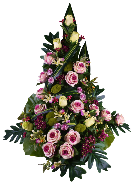 Devant de tombe, rose, orchidée, pierre mousse, et spirale aluminium. Support lesté.