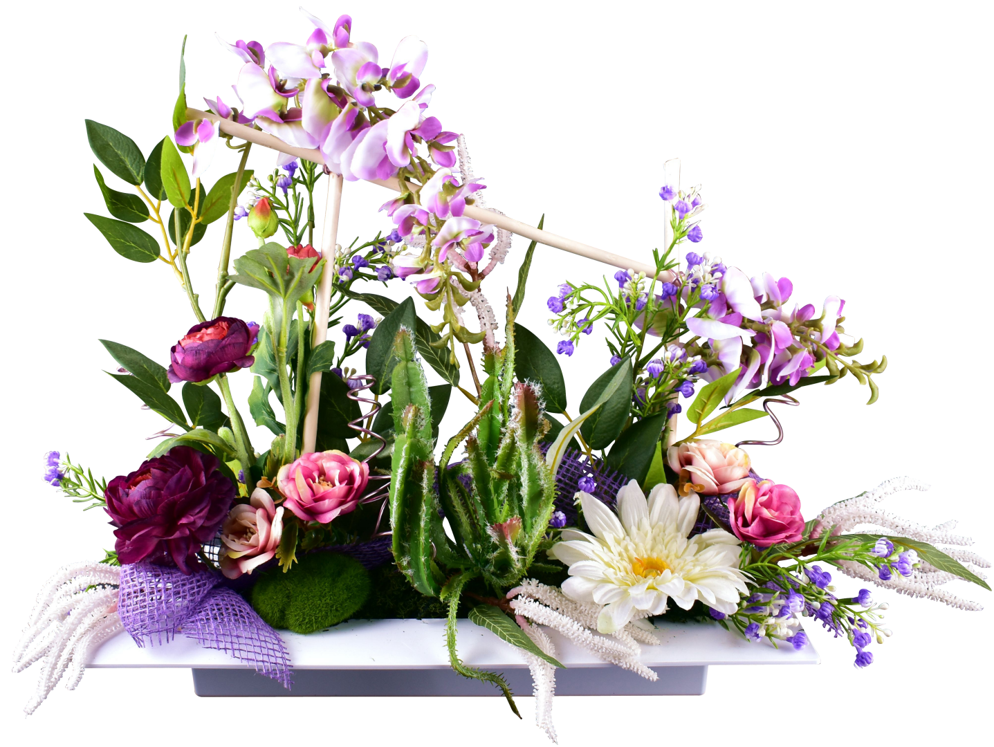 Ultra plate, glycine, renoncule, gerbera, succulent, astilbe, support lesté.