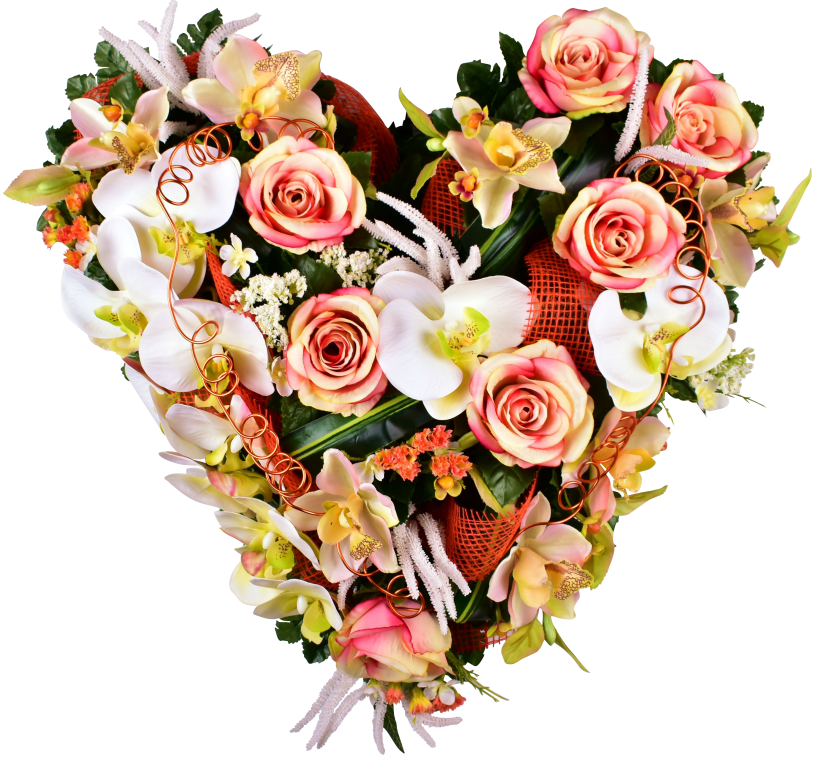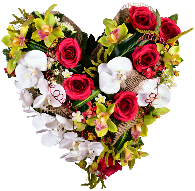 Coeur, rose, cymbidium, statice. Phalénopsis, astilbe. Support lesté
