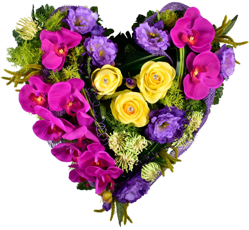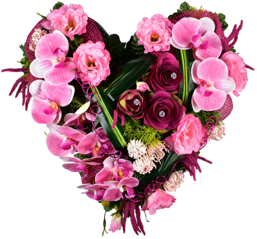 Coeur, phalenopsis, rose, lysianthus. Shamrock, epingles, diamant. Support lesté