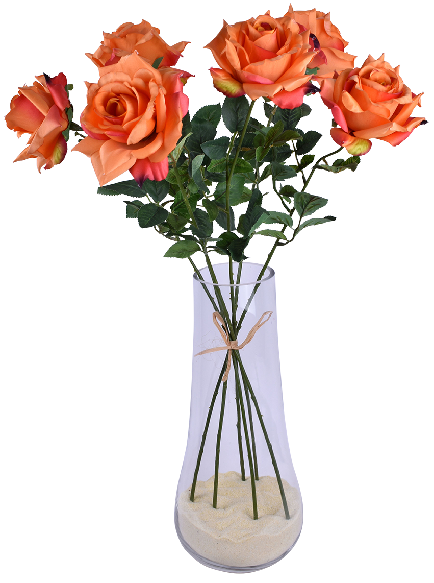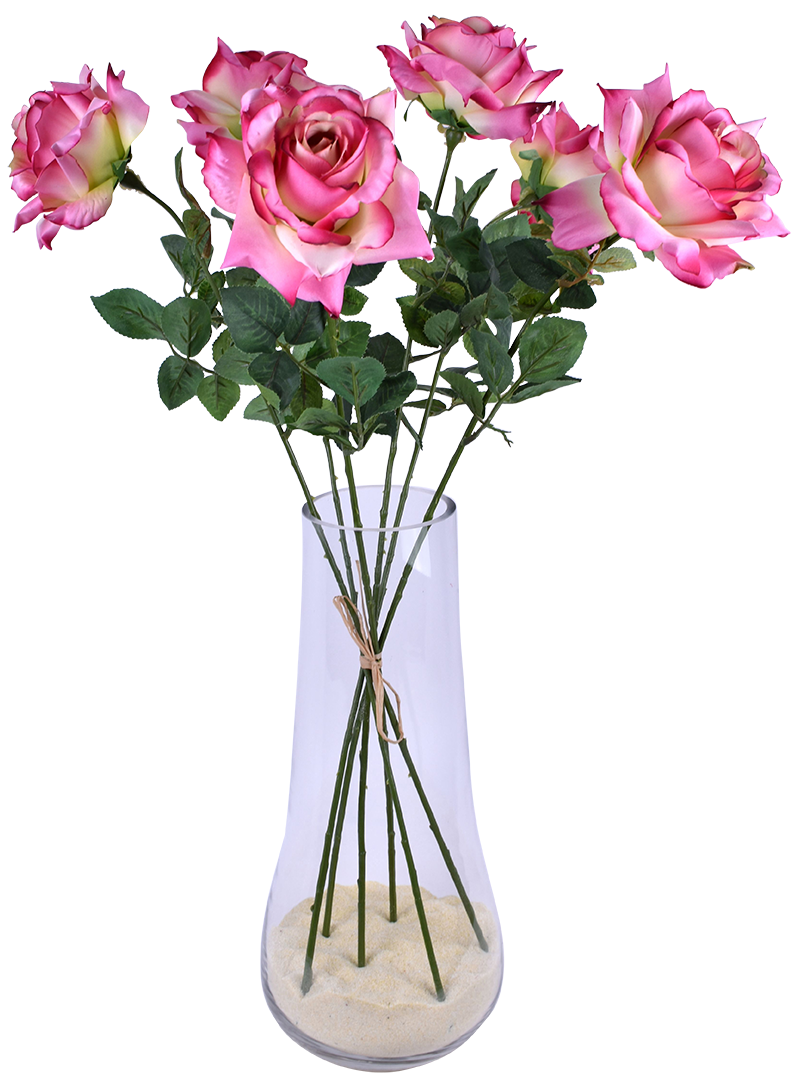Botte de 6 roses épanouies, longueur 70 cm.