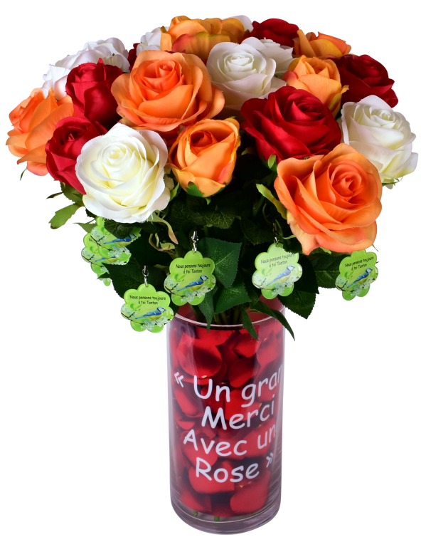 Bouquet de 30 roses à partager avec vase et pampilles à personnaliser. ...