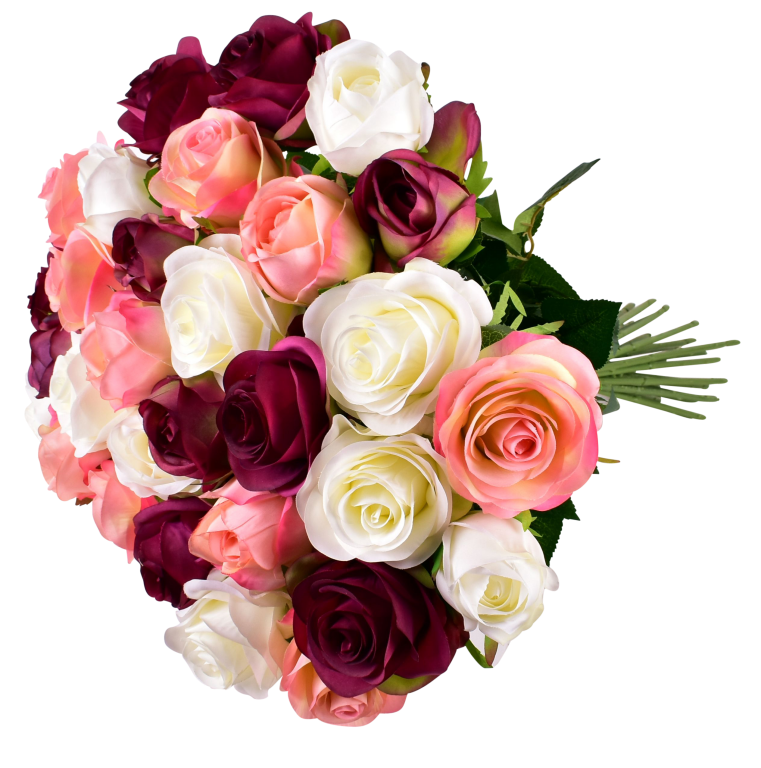 Bouquet de 30 roses à partager avec vase et pampilles à personnaliser.