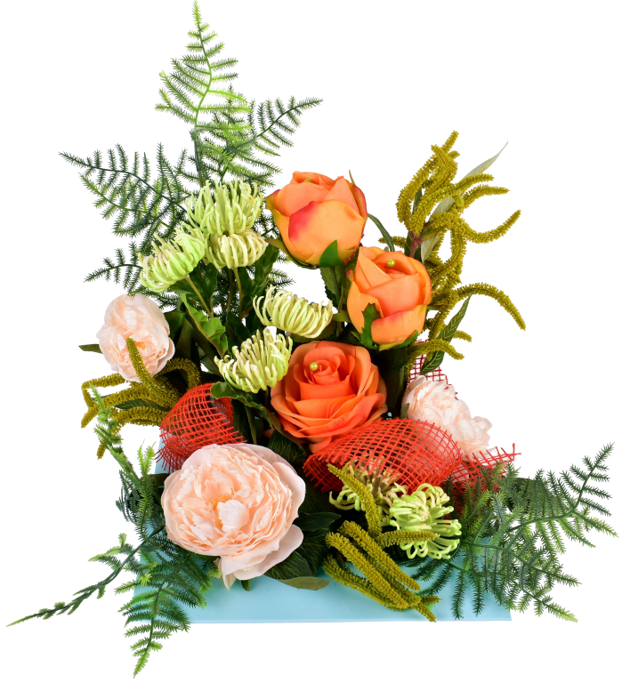 Plateau carré, rose, pivoine, astilbe SUP24004-1