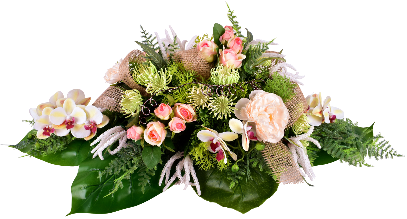 Raquette, rose, pivoine, phalénopsis. Astible et shamrock. Support lesté.